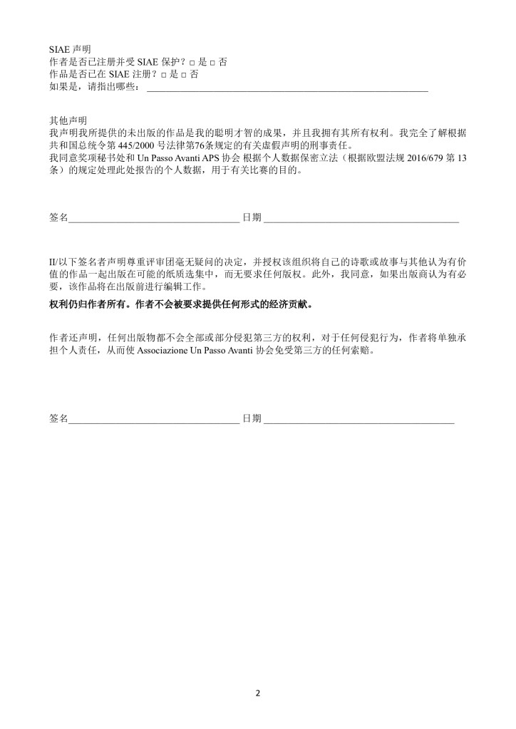 您可以提交两首已出版或未出版的诗歌,每首不能超过48 行。